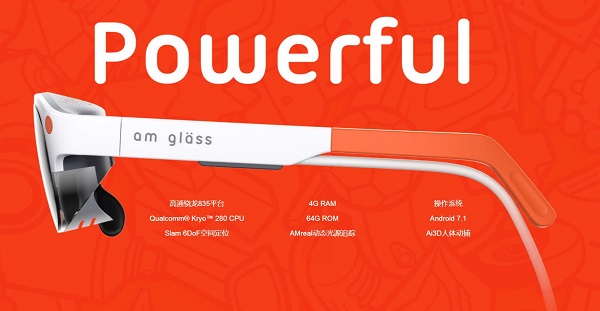 太平洋未來(lái)科技自主研發(fā)的AR眼鏡am glass于2019年11月12日正式對(duì)外發(fā)布。am glass時(shí)尚輕巧,支持slam算法、手勢(shì)識(shí)別、圖像識(shí)別,有6DOF追蹤,亮度最大可達(dá)到3000流明,支持白天、黑夜、戶外、室內(nèi)等各種復(fù)雜場(chǎng)景。