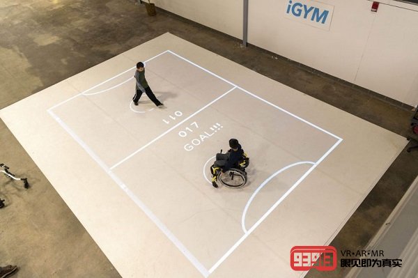 由密歇根大學(xué)Penny W. Stamps藝術(shù)與設(shè)計(jì)學(xué)院副教授Roland Graf領(lǐng)導(dǎo)的一組研究團(tuán)隊(duì)開發(fā)了基于投影的增強(qiáng)現(xiàn)實(shí)運(yùn)動(dòng)體驗(yàn),交互式系統(tǒng)被稱為iGYM,它通過使用投影儀來創(chuàng)建類似于足球場(chǎng)的增強(qiáng)現(xiàn)實(shí)球場(chǎng)。