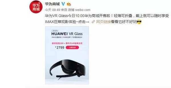 12月19日,華為全新VR眼鏡正式開賣,售價(jià)2999元。