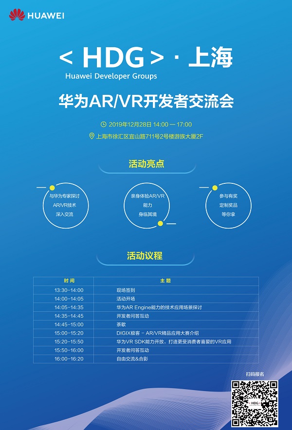 HDG上海站-華為AR/VR開發(fā)者交流會(huì),邀請(qǐng)到了AR/VR開發(fā)部技術(shù)專家和業(yè)務(wù)負(fù)責(zé)人,分享和交流華為AR/VR相關(guān)技術(shù),介紹DIGIX極客-AR/VR精品應(yīng)用大賽,開發(fā)者還可現(xiàn)場體驗(yàn)和感受相關(guān)產(chǎn)品。
