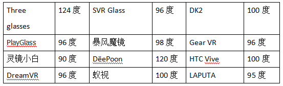 目前主要廠商宣稱的FOV統(tǒng)計(jì)如下: