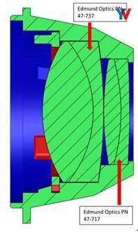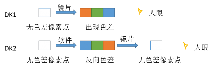 該方法僅僅是在軟件層面做了修正,但會(huì)對(duì)圖像清晰度造成一定影響,而且圖像上的每一個(gè)像素都需要做一次反向色散的處理,增加了硬件負(fù)擔(dān),會(huì)降低圖像的幀率。最好的方法是采用多組材料不同的鏡片組成消色差鏡組,用光學(xué)的方法消除色邊。這在鏡頭設(shè)計(jì)中已非常成熟,如復(fù)消色差物鏡(Apochromatic objective),能夠完全消除圖像的色差。