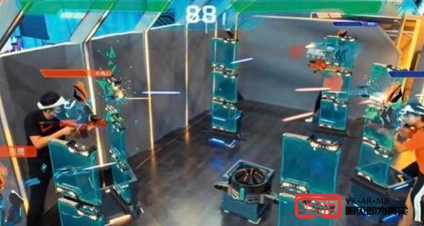 記者在現(xiàn)場看到,《全息戰(zhàn)場》結(jié)合了傳統(tǒng)射擊游戲與科幻全息競技元素,玩家能夠在全息影像中進(jìn)行對決,借助全息擋板躲避攻擊。記者注意到,上場比賽的四名玩家頭戴Rhino X MR頭顯,手持PPGun玩具槍參與了對戰(zhàn)。游戲中,玩家的移動比較激烈,比如移動到全息擋板后,下蹲躲避子彈,還可以接到道具補(bǔ)充能量。當(dāng)被子彈擊中,玩家會掉血量,70秒內(nèi)血量多者為勝。當(dāng)起到保護(hù)作用的全息擋板被對方擊碎之后,玩家就只能依靠自己的腳步來躲閃。