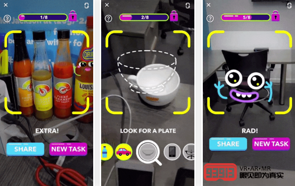 Snapchat推出了一款名為Scavenger Hunt的新Snappables游戲。游戲的目的是讓用戶使用智能手機(jī)的相機(jī)在周圍環(huán)境中找到八個(gè)真實(shí)世界的目標(biāo)物體。作為發(fā)現(xiàn)每個(gè)對象的獎勵,該應(yīng)用通過動畫AR笑臉將每個(gè)對象擬人化。找到所有八種對象類型的玩家將解鎖特殊的“英雄獵人”自拍鏡頭。