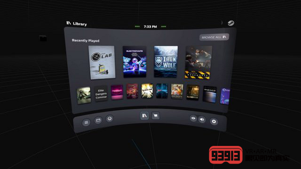 在此Beta版本中,新的SteamVR面板非常簡單,可以查看您最近運行的四個內(nèi)容以及庫中其他內(nèi)容的可滾動列表。