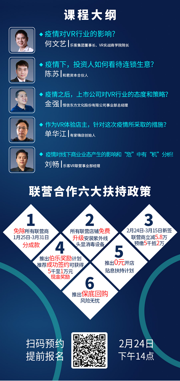 為了應對疫情帶來的沖擊,樂客VR為聯(lián)營合作商重點推出強而有力的支持,提出“聯(lián)營合作六大扶持政策”,積極推出與聯(lián)營商共同進退的合作方案,眾志成城,共克時艱。