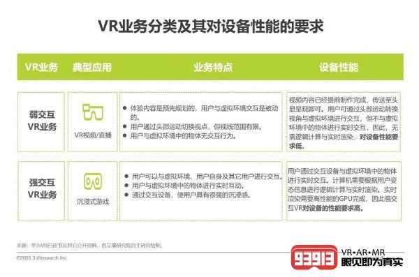 相較于弱交互VR業(yè)務,強交互VR業(yè)務對VR設備的性能要求更高