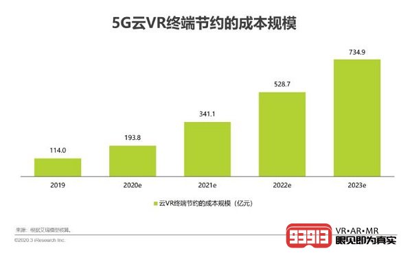 如上文所述,PC VR能為用戶帶來良好的體驗,但是PC要配置高性能的GPU,CPU及8GB以上的RAM,導致用戶使用成本高?;谑謾C的輕量級VR與一體機VR雖然成本低,但性能也低,無法滿足用戶良好的體驗需求。云VR將邏輯計算與實時渲染放在云端,并通過5G網(wǎng)絡與終端之間實現(xiàn)畫面?zhèn)鬏?,為用戶帶來良好體驗的同時,也降低了對終端的性能要求。從GPU與CPU的價格估算,相較于PC VR,云VR終端成本至少降低2000元,有效降低了用戶使用門檻,有利于VR的加速普及。