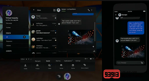 去年12月,F(xiàn)acebook針對(duì)Oculus平臺(tái)添加了跨設(shè)備文本聊天功能,因此當(dāng)Oculus用戶的朋友在現(xiàn)實(shí)世界時(shí),Oculus用戶并不會(huì)完全與他們斷開聯(lián)系。但是在當(dāng)前的VR系統(tǒng)中打字是一項(xiàng)艱巨的任務(wù),顯然聚會(huì)邀請(qǐng)通知提供了一種快捷的語(yǔ)音通信方式,可以預(yù)見(jiàn)VR比文本更適合語(yǔ)音通信。