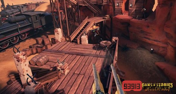 《槍的故事:防彈VR》提供了一段劇情介紹,一個(gè)老牛仔對(duì)他的孫子講述了其青年時(shí)期與土匪發(fā)生小規(guī)模沖突的故事,這些故事聽起來多少有些被添油加醋,但仍充滿傳奇色彩。比如玩家不僅能得到幾把手槍,還可以使用從投擲武器到未來槍支等種類繁多范圍廣泛的武器庫?!稑尩墓适拢悍缽梀R》游戲風(fēng)格充滿黑色幽默感和幻想主義,玩家會(huì)在游戲中遇到蒸汽朋克風(fēng)格的敵人、無人機(jī)和騎著賽格威電動(dòng)車的牛仔等等。