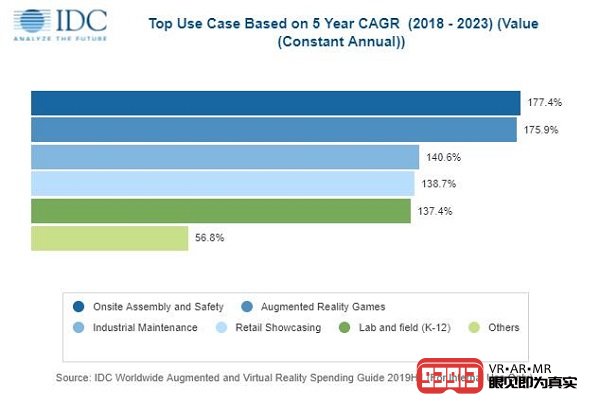 盡管教育和零售行業(yè)的市場(chǎng)支出最高,但在預(yù)測(cè)期內(nèi),還有其他行業(yè)具有較高的增長(zhǎng)潛力,其中有一些新的應(yīng)用場(chǎng)景正在開(kāi)發(fā)中。首先是零售業(yè)(復(fù)合年增長(zhǎng)率為94.8%),緊隨其后的是公用事業(yè)、證券、投資服務(wù)和制造業(yè),這些行業(yè)在發(fā)力探索新的AR/VR技術(shù)應(yīng)用場(chǎng)景方面十分積極,并且確信能在投資方面獲得豐厚利潤(rùn)。當(dāng)前采用AR技術(shù)處理操作任務(wù)的用例,例如執(zhí)行諸如組裝、維護(hù)和維修之類(lèi)的任務(wù),這在制造業(yè)領(lǐng)域中具有很大的推動(dòng)力。