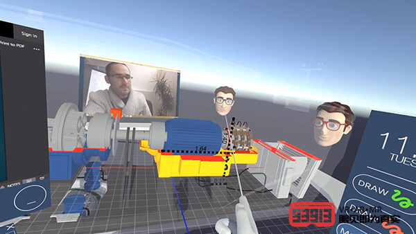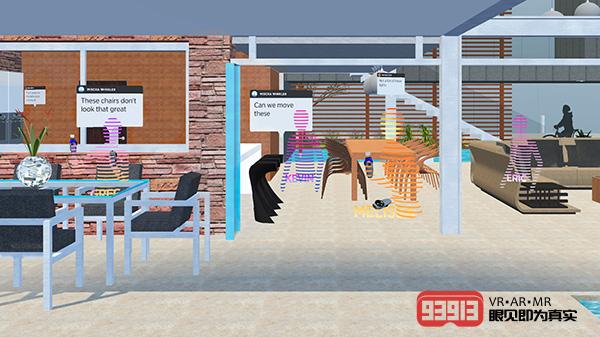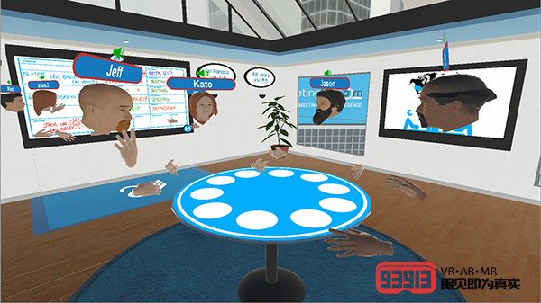 MeetingRoom提供一個(gè)虛擬的會(huì)議室,提供由參與者操縱的協(xié)作和演示工具,使用VR頭顯與多達(dá)12名團(tuán)隊(duì)成員一起指點(diǎn)、討論、標(biāo)記和刪除。當(dāng)然,也可以通過非VR平臺(tái)訪問。