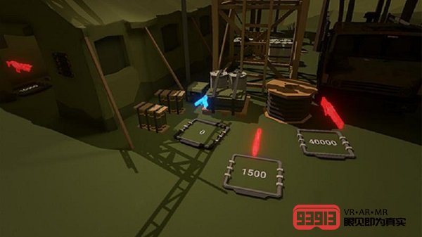 在具體的玩法上,制作組強(qiáng)調(diào),他們避免使用經(jīng)典的游戲圖形界面,因為他們認(rèn)為傳統(tǒng)的菜單在VR中不起作用。與之相反,他們希望玩家在場景中找到可以與之交互的對象。比如在選擇武器時,玩家可以在場景中撿取各種槍械,不過紅色的槍械意味著還未解鎖,而藍(lán)色的槍械意味著已解鎖(既可使用)。