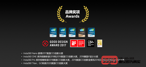 伴隨著優(yōu)秀的革新相機產(chǎn)品而來的,是市場的青睞和肯定。Insta360影石產(chǎn)品多次獲得美國CES創(chuàng)新大獎及金獎、德國iF設(shè)計獎、德國紅點設(shè)計大獎等專業(yè)獎項,并與Apple、徠卡、Google等行業(yè)巨頭建立深入合作伙伴關(guān)系,得到國內(nèi)外市場的廣泛認可。