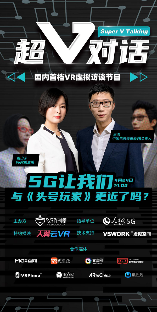 4月24日,由知名VR/AR產(chǎn)業(yè)媒體VR陀螺聯(lián)合中國電信天翼云VR、人民網(wǎng)5G創(chuàng)新中心聯(lián)合打造首檔VR虛擬訪談節(jié)目《超V對話》即將上線,本節(jié)目由VSWORK®虛擬空間提供技術(shù)支持。在虛擬世界中,呈現(xiàn)了一場來自“云端”的訪談。