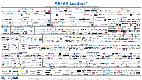 Digi-Capital對VR/AR市場的長期預(yù)測是,到2024年,VR/AR市場的收入將達(dá)到650億美元左右。然而,未來兩年預(yù)計(jì)將受到COVID-19相關(guān)因素的影響,包括(但不限于)物理封鎖、實(shí)體零售店倒閉、電商交付限制、供應(yīng)鏈中斷(供應(yīng)商、制造商、分銷、批發(fā)、零售)以及經(jīng)濟(jì)衰退/蕭條的影響——
