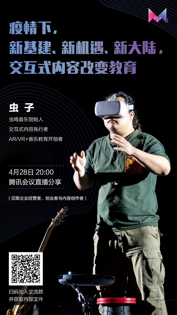 4月28日晚8點(diǎn),題為《疫情下,新基建、新機(jī)遇、新大陸,交互式內(nèi)容改變教育》的直播分享正式開場(chǎng)。蟲子與來自于 AR/VR、教育等領(lǐng)域的數(shù)百位觀眾在直播間內(nèi)分享他的行業(yè)洞察、他的目光如炬、他的萬里曙光、他的不懈堅(jiān)持,還有他的憧憬無限。