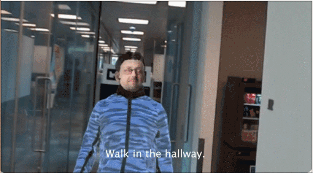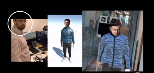 對于在辦公室的在場工作者來說,他可以看到真實場景中疊加的同事形象,并與對方進行交互。雖然這種畫面有時候比例有些奇怪,但是可以看到交互還是很流暢的。