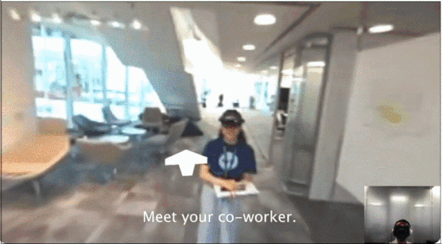 對于在場工作者來說,他們可以通過微軟HoloLens AR頭顯,看到遠程用戶的真人大小的“化身”疊加在真實的辦公室場景中。