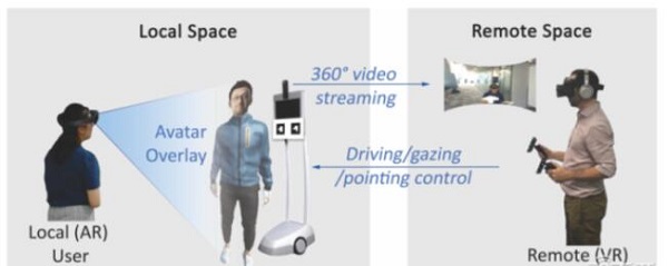 VROOM系統(tǒng)的作用在于,將本地(AR)和遠程(VR)用戶匯聚到一個時空“場”中,增強使用遠程呈現(xiàn)機器人的體驗。