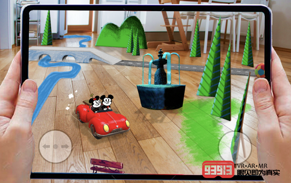 在游戲開啟時,玩家將控制三個標志性的迪斯尼角色——米奇、米妮、高飛,并暢游在充滿經(jīng)典米老鼠卡通元素的AR環(huán)境里。一旦進入這些懷舊的AR競技場,玩家就可以用各種汽車、建筑、電源和道具定制其周圍的環(huán)境,并創(chuàng)造心目中理想的迪士尼樂園。此外,玩家還可以通過觸控屏來控制包括汽車、火車在內(nèi)的各種卡通車輛。