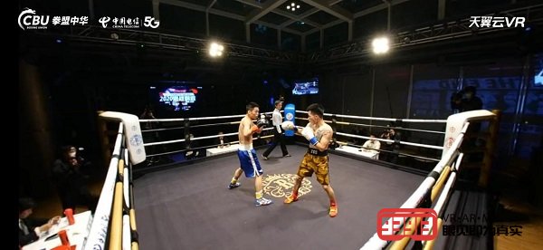 天翼云VR采用5G 4K 360°3D多視角VR直播技術(shù),在擂臺紅藍(lán)對角和拳臺上方共設(shè)置3組機位,通過雙方選手和全景視角的畫面切換,為觀眾全面呈現(xiàn)現(xiàn)場實況、直擊比賽的精彩時刻,切身感受“沉浸”式觀賽的新奇體驗、直擊拳臺上激烈對抗的緊張刺激。
