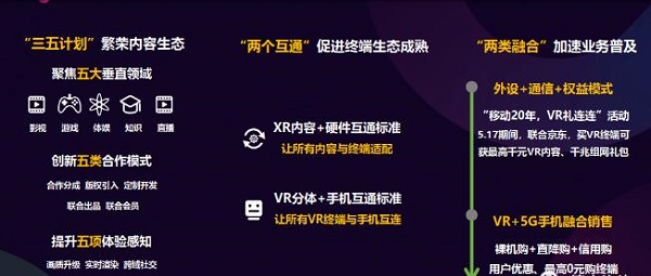 除此之外,中國(guó)移動(dòng)為更好地構(gòu)建開(kāi)放合作的VR產(chǎn)業(yè)生態(tài),破除VR領(lǐng)域發(fā)展瓶頸,發(fā)布了云VR內(nèi)容、終端、營(yíng)銷(xiāo)三大合作計(jì)劃。