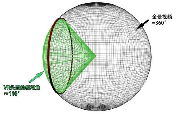 VR頭顯的視場角一般是110°左右,全景視頻是一個360°的球體,相當(dāng)于VR頭顯視場角的3倍多。VR頭顯屏幕分辨率一般為2K或4K,因此全景視頻的最佳分辨率也是其3倍多,即8K或12K。