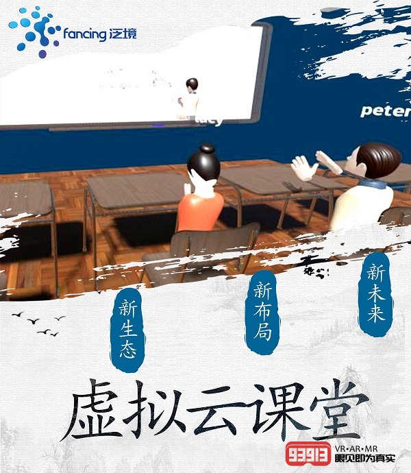 “虛擬云課堂”是一款應(yīng)用于VR、PC、移動(dòng)等終端的多人線上教學(xué)平臺(tái),可實(shí)現(xiàn)語(yǔ)音同步、交互動(dòng)作與內(nèi)容同步等,泛境提供的沉浸式教學(xué)方式一方面可解決線上教學(xué)問題,另一方面通過可視化與新形式大大提高師生上課的興趣。