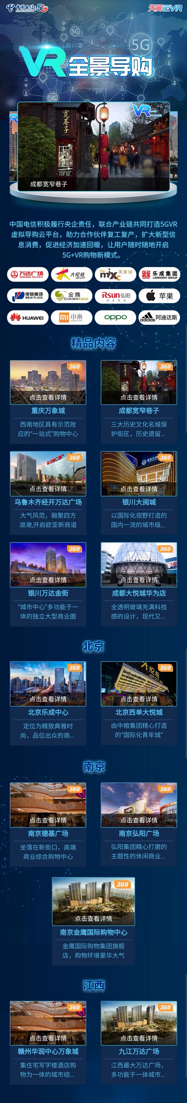 “VR虛擬導(dǎo)購(gòu)”服務(wù)是在當(dāng)前疫情環(huán)境下,全國(guó)購(gòu)物中心線下客流銳減,線上場(chǎng)景化銷售能力急需加強(qiáng)的大背景下產(chǎn)生的。近期,中國(guó)電信基于5G和云技術(shù),開(kāi)發(fā)VR全景虛擬導(dǎo)購(gòu)云平臺(tái),并聯(lián)合商業(yè)實(shí)體、渠道、品牌廠商等合作方,共同打造VR商業(yè)綜合體,快速構(gòu)建VR體驗(yàn)、購(gòu)物等新商業(yè)模式,推進(jìn)疫情期間在家購(gòu)物,打造身臨其境的購(gòu)物體驗(yàn)。