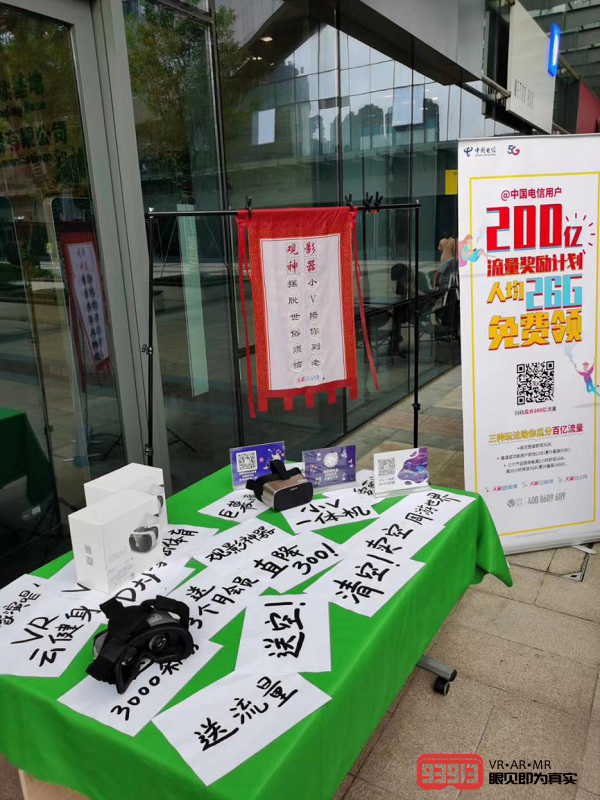 而且,這款定位為“觀影神器”的小V一體機(jī)也賣(mài)出了VR界的“地?cái)們r(jià)”。據(jù)了解,小V一體機(jī)是在5月17日正式上線發(fā)售的,筆者在蘇寧易購(gòu)天翼云VR自營(yíng)店查詢其官方售價(jià),原價(jià)為1299元,新品優(yōu)惠價(jià)格1099元。而擺攤當(dāng)天則推出了買(mǎi)小v直接領(lǐng)補(bǔ)貼、送會(huì)員、送積分的活動(dòng),最終到手價(jià)僅需799元,這個(gè)價(jià)格可謂非常親民,讓每個(gè)老百姓都能買(mǎi)得起。