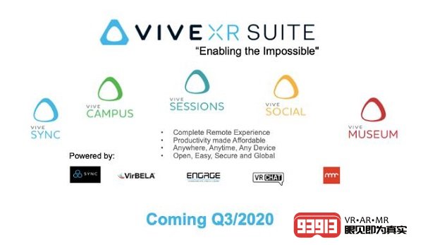 VIVE XR SUITE包括VIVE Sync遠程協(xié)作和會議應用、VIVE Sessions大型會議和展覽以及虛擬教育平臺、VIVE Campus基于云的企業(yè)應用程序平臺、VIVE Social社交社區(qū)以及VIVE Museum虛擬現(xiàn)實博物館,將會實現(xiàn)跨平臺支持、多種終端接入,兼容市面大多數(shù)領先的VR平臺及設備,還將支持手機以及電腦等非VR設備。VIVE XR SUITE虛擬應用套裝預計將于2020年三季度正式推出。