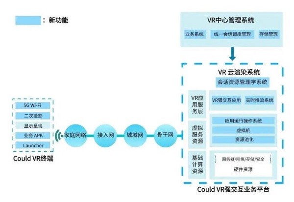 而位于之下的是平臺層,平臺層對Cloud VR視頻業(yè)務(wù)和強(qiáng)交互業(yè)務(wù)提供云渲染、流化、轉(zhuǎn)碼、存儲、編碼等功能。