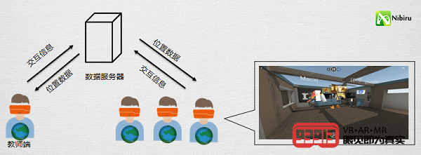 由XR應(yīng)用專業(yè)開發(fā)工具NibiruStudio技術(shù)支持的全新師生協(xié)同機制將成為二代ClassVR再次席卷全球VR教育領(lǐng)域的殺手锏。搭載該方案的ClassVR,當教師與學(xué)生同時帶上設(shè)備,啟動對應(yīng)應(yīng)用進入機械學(xué)習(xí)虛擬課堂或某一教學(xué)場景之中,教師與學(xué)生身處于同一虛擬場景中,并可在老師的帶領(lǐng)與講解下,與學(xué)生進行針對場景的移動、交互或其他探索。學(xué)生之間也可以進行協(xié)同互動,進行更多交流。相較于一代ClassVR師生協(xié)同方案:教師作為主控端統(tǒng)一控制播放學(xué)生端的教學(xué)內(nèi)容,學(xué)生端只回傳觀看視角相比,二代全新師生協(xié)同機制,在教師與學(xué)生、學(xué)生與學(xué)生之間建立連接,增強學(xué)生端主動性,增強教學(xué)應(yīng)用場景中的實用性。
