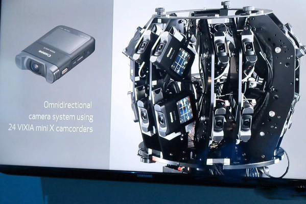 佳能也展示了一組帶有7個6D相機的設備,還有一個配置了24個卡槽可裝卸攝像頭的設備,他們都是用來捕捉虛擬現(xiàn)實體驗的視頻。