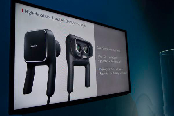 佳能在本周的2015 Expo上的展示了早期的“秘密”虛擬現(xiàn)實原型,是一個相對較大的手持虛擬現(xiàn)實設備。該設備需要用手舉著貼近人的臉部,然后360度轉動觀看。這款設備擁有2.5K的分辨率,120度的視野。配備有兩個5.5英寸的顯示器,每個顯示器的分辨率為2560 x1440。佳能表示,視頻是在56000×28000的分辨率下錄制。