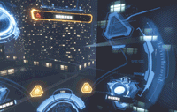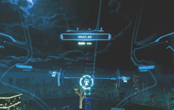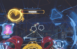 進(jìn)入《漫威鋼鐵俠VR》的關(guān)卡時,游戲會模擬鋼鐵俠戴上頭盔,全息影像逐個浮現(xiàn)的效果,讓我像電影中的鋼鐵俠一樣通過高科技 UI 用第一視角去觀察周圍。鋼鐵俠的飛行方式與利用特異功能直接浮空的英雄不同,需要依靠手部的推進(jìn)裝置噴射能量來反方向移動,向前飛行時就需要手掌向后扣動 Move 手柄的扳機鍵來操作。隨著我頭部的移動,角色的飛行方向會隨之改變。稍微上手一段時間,我就能做到用 Move 手柄和頭盔來隨時起飛前往想去的位置,或是進(jìn)行左右橫移、倒退等基本操作。如果感覺用頭轉(zhuǎn)彎不太方便,還可以通過按鍵來進(jìn)行 90° 和 180° 的快速轉(zhuǎn)向,做到真正的身隨心動。