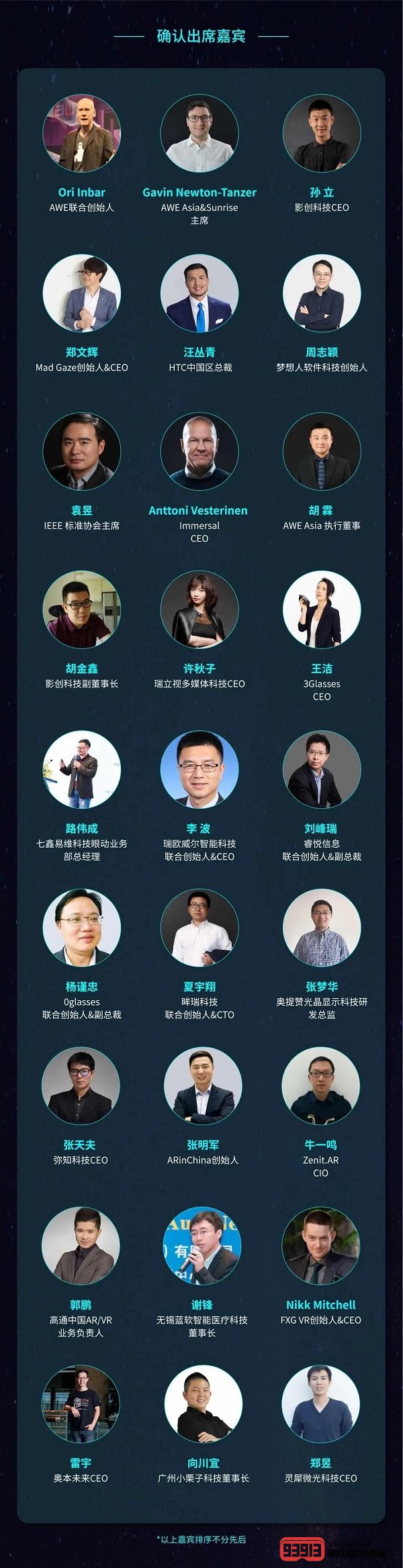 受新冠肺炎影響,部分海外演講嘉賓無(wú)法親臨現(xiàn)場(chǎng)參加本次活動(dòng)。經(jīng)大會(huì)組委會(huì)決定,海外演講嘉賓可選擇進(jìn)行線上演講的方式參與此次展會(huì)活動(dòng)!截止目前,大會(huì)組委會(huì)已經(jīng)確認(rèn)了部分AWE Asia 2020的線上及線下演講嘉賓。