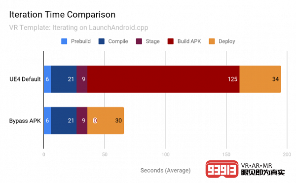 Oculus使用UE4隨附的VR模板進(jìn)行的測(cè)試結(jié)果顯示,省略APK打包過(guò)程可將應(yīng)用開(kāi)發(fā)速度提升2.95倍,迭代時(shí)間則從3分半縮短至66秒。