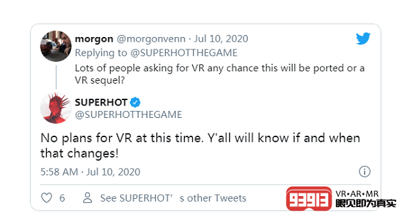 值得注意的是該作不具備VR模式,官方為此的解釋是尚無開發(fā)VR版本的計(jì)劃。雖然這多少讓玩家有點(diǎn)失望,但SUPERHOT Team顯然有自己的打算,其SUPERHOT系列至今為止已開發(fā)了三款游戲,并形成了廣泛的品牌效應(yīng)。