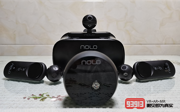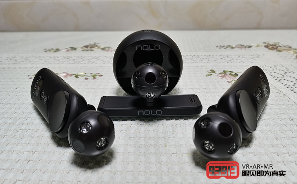 純科技黑的外觀造型,這是占據(jù)視覺最大篇幅的部分,純黑幾乎是VR頭顯幾年來最潮流的底色,與其他家產(chǎn)品的橙色、白色款不同,NOLO選用穩(wěn)重的,適合打造虛擬現(xiàn)實沉浸感最搭配的黑色。前面板和機(jī)身均是圓角過度,雙手托舉非常輕松,上方依舊是NOLO最有特色的定位傳感器,使用OTG線到一體機(jī),兼容性和一體化便成為了此款產(chǎn)品最值得用戶體驗的地方。左右手柄應(yīng)該是目前VR頭顯中重量最輕體積最小的款式,手柄上方兩個球狀的傳感器和頭部一樣,依賴小型的基站作為接收定位信號的工具。整體外觀非常簡潔,接下來看細(xì)節(jié)部分。