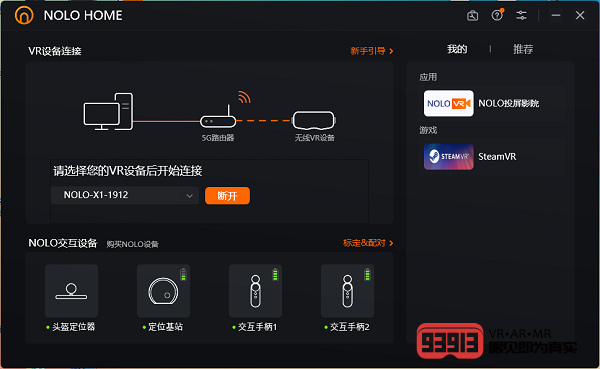 在VR這個圈子里,用一體機(jī)或手機(jī)串流玩SteamVR一直是個熱門話題,包括使用RiftCat、ALVR、Virtual Desktop等知名串流軟件,而NOLO VR從手機(jī)VR時代就一直致力于串流體驗,也是全球最早做出6DoF串流軟件的公司。基于NOLO HOME平臺搭配定位傳感器,給串流加了一雙6DoF空間定位的翅膀,也帶來了極大的體驗優(yōu)勢。