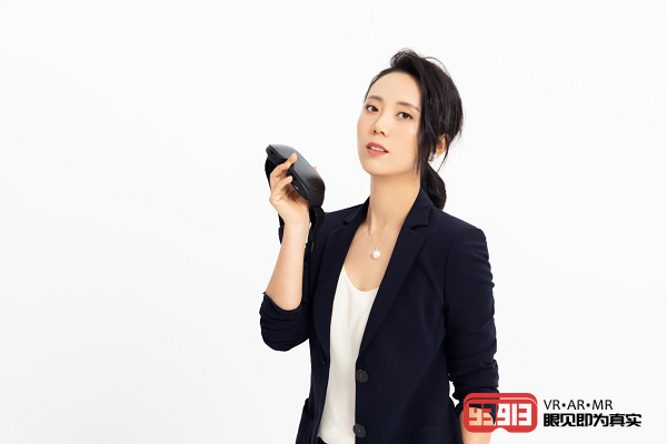 (3Glasses創(chuàng)始人王潔和超薄VR產(chǎn)品3Glasses X1)