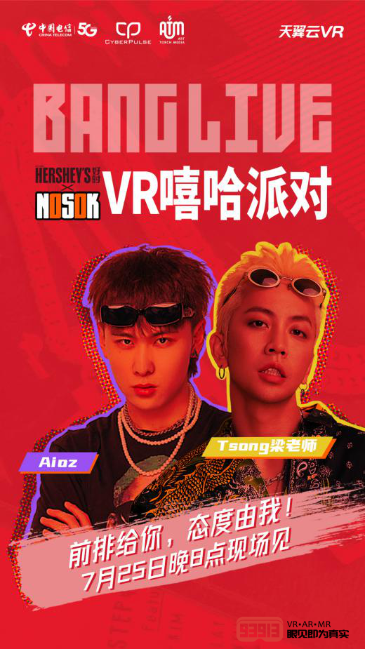 7月25日20:00點,下載“天翼云VR”app,看VR沉浸式直播,來一場超嗨的VR視聽盛宴!