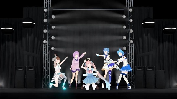 同時在活動當(dāng)日,Balus在澀谷的線下live吧采用表演者進(jìn)行動作捕捉轉(zhuǎn)化同步為三維建模,在虛擬VR空間下通過投放在AR實(shí)時屏幕上進(jìn)行演出,觀眾現(xiàn)場進(jìn)行實(shí)時應(yīng)援的方式進(jìn)行。