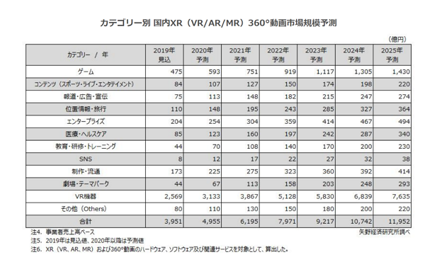 圖:日本國內(nèi)XR各分市場規(guī)模預(yù)測