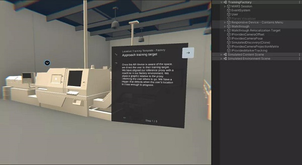培訓模板由三部分組成:導覽系統(tǒng)、UI 開發(fā)(用戶界面面板,將在下方討論)和響應性Unity MARS行為。