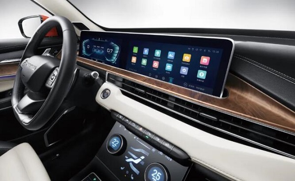 儀表盤和原本顯示導(dǎo)航的中控屏幕被打通,兩塊12.3英寸的懸浮式貫穿大屏,不但能夠全屏瀏覽地圖,還能實現(xiàn)雙屏畫面自由切換。