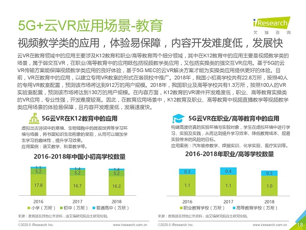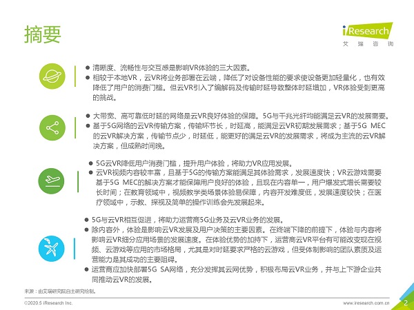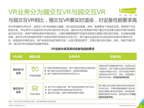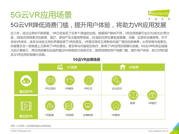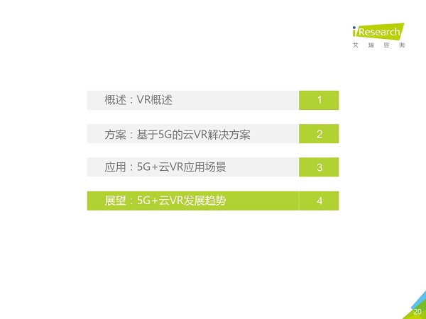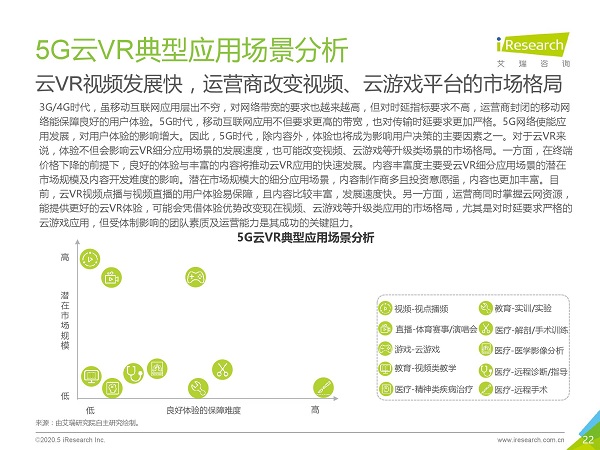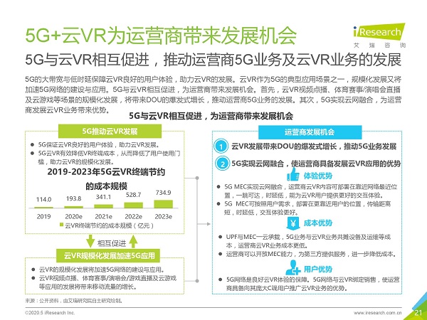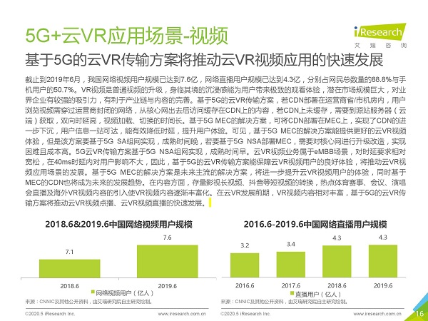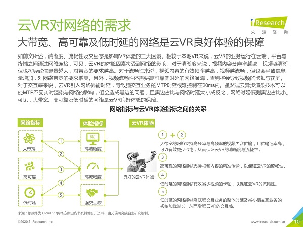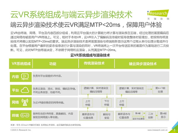 市場(chǎng)調(diào)研機(jī)構(gòu)艾瑞咨詢發(fā)布《2020年5G+云VR研究報(bào)告》,該報(bào)告首先通過對(duì)本地VR與云VR進(jìn)行對(duì)比,總結(jié)出云VR的優(yōu)勢(shì)與挑戰(zhàn),然后重點(diǎn)對(duì)云VR的解決方案與典型應(yīng)用場(chǎng)景進(jìn)行了研究,最后給出了運(yùn)營(yíng)商發(fā)展云VR的優(yōu)勢(shì)與建議。