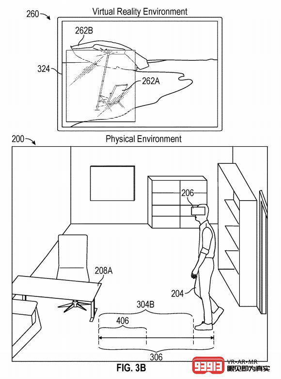 據(jù)悉,該蘋果全新專利與其他同類專利區(qū)別之處在于,該專利不僅可以檢測到用戶與障礙物之間的實際距離,更能使用戶在VR環(huán)境中看到現(xiàn)實環(huán)境的真實情況。不僅如此,這項專利還增加了“一個或多個”的虛擬物體,從而使用戶能在沉浸感不被打斷的情況下有效的規(guī)避障礙物。